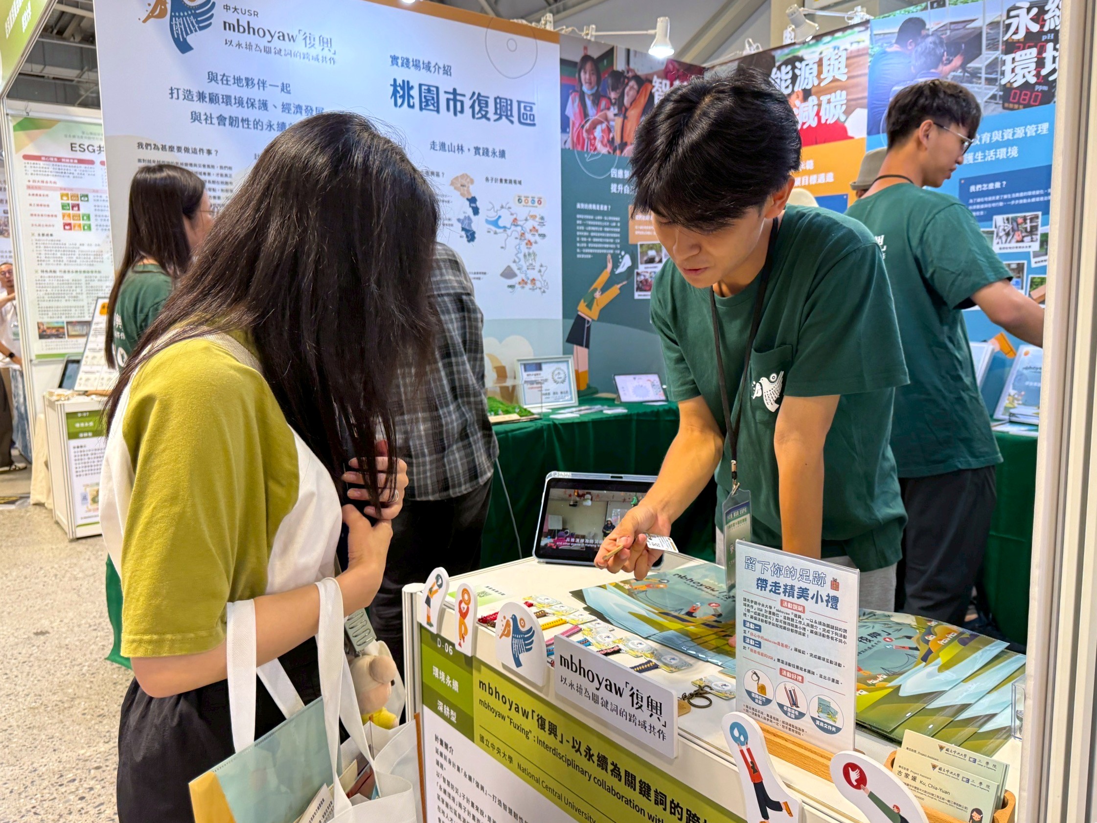 Throughout the two-day event, the NCU team actively visited other universities’ booths as well—such as Shih Chien University’s promotion of Neimen’s Songjiang Battle Array culture; National Taipei University of Business’s support for En Chu Kong Hospital and local enterprises in ESG assessment and implementation; and National Taipei University of Technology’s efforts to protect Yingge’s ceramic culture. These projects showcased mature, place-based practices and reminded us that we are not alone on the USR journey.