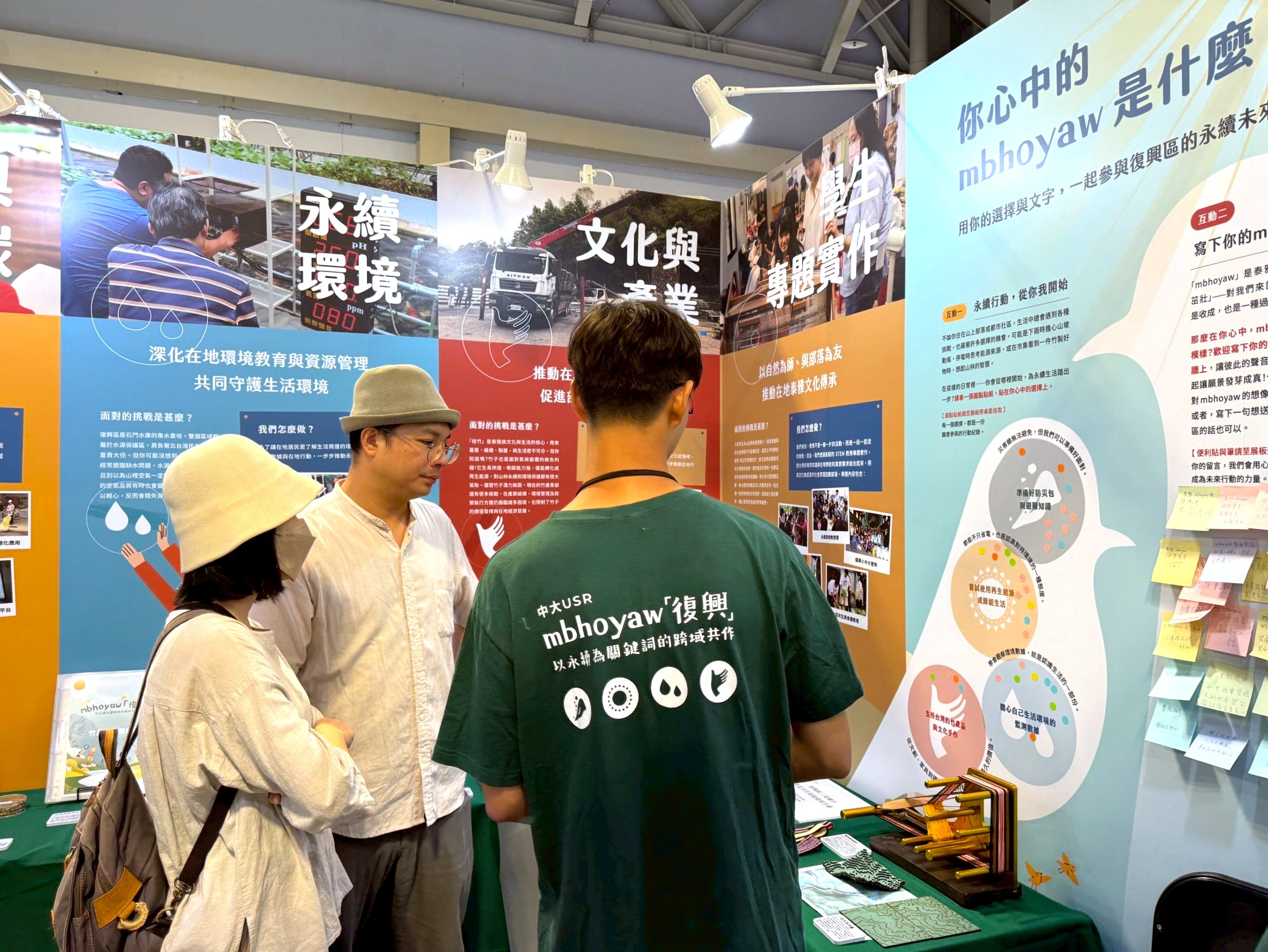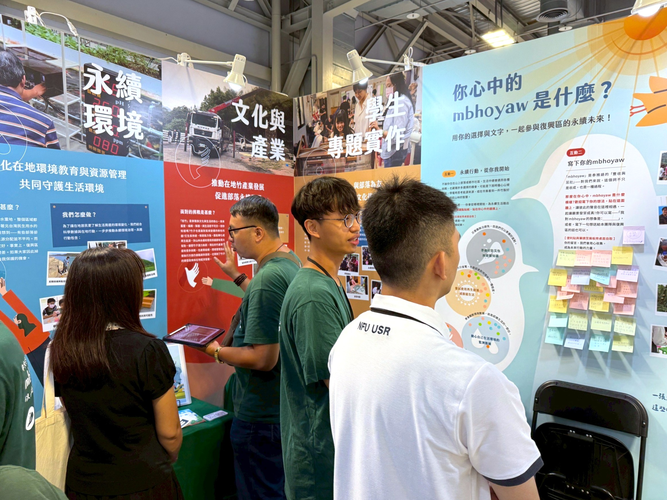 This year we also prepared English-language tours to connect with international visitors. During the exhibition, an invited speaker from Japan visited our booth for a full briefing; at the end, she left a sticky note reading, “mbhoyaw equals resilience.” Simple yet profound, it affirmed that the message we hoped to convey had been genuinely received. Even across differences of language and culture, we are eager to bridge gaps so the work behind mbhoyaw can be seen.